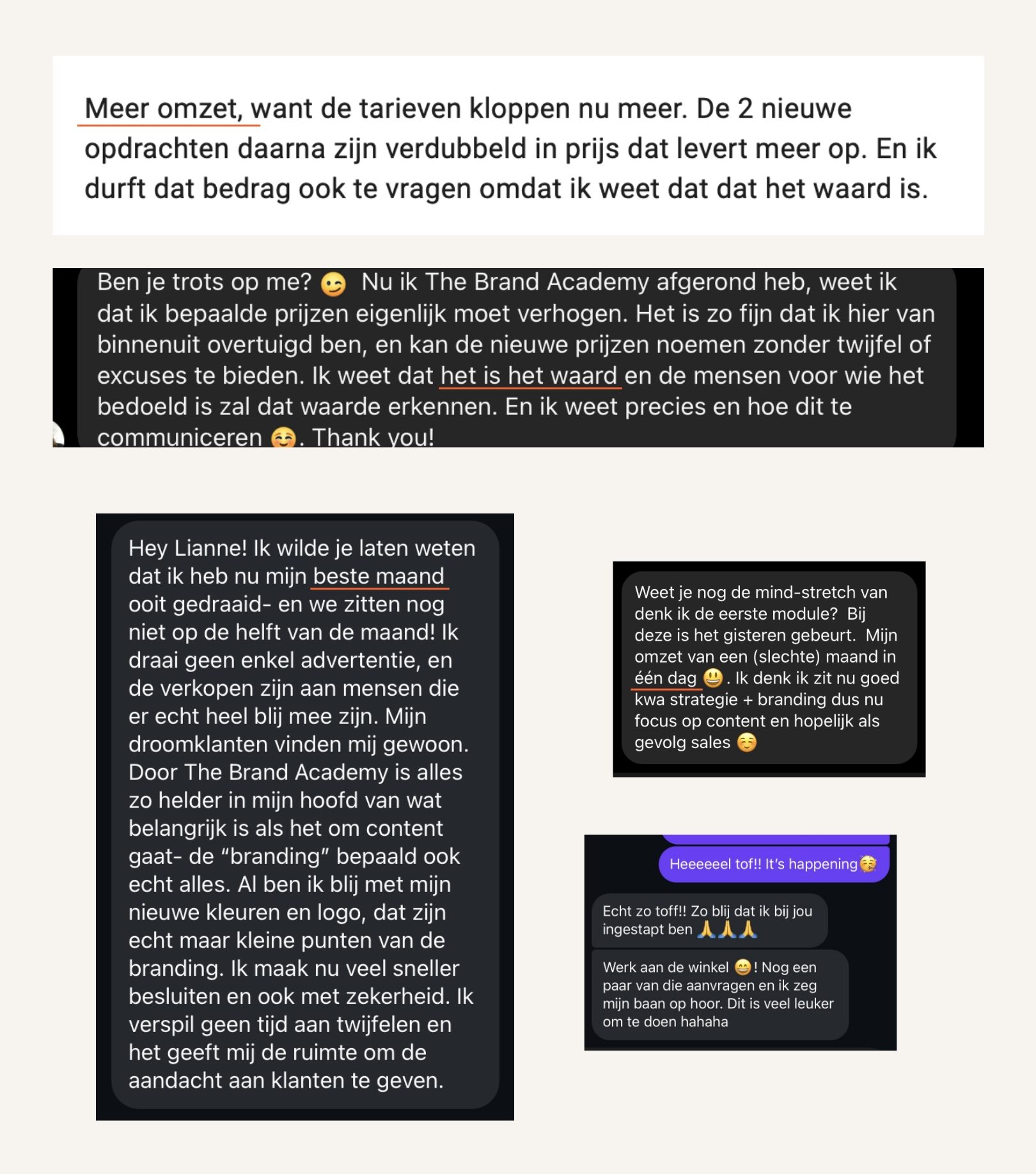 Geen loze beloftes, maar echte resultaten. Op deze pagina lees je wat deelnemers van The Brand Academy ervaren, bereiken en vooral: wat het hen concreet oplevert.